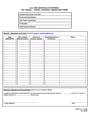 - For Method 1, after documenting the details, attach the completed Liquidation Form to your receipt packet in GovTrip. Then, email the National Business Center at fwsegov_nbcdenver@nbc.gov to notify them of the liquidation request.