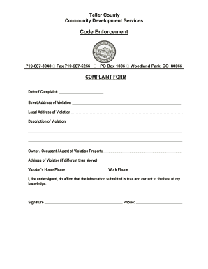 Get Teller County Code Enforcement Complaint Form