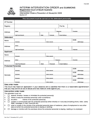 - Review the intervention order provisions carefully. Ensure all applicable prohibitions are included, such as restrictions on contact and proximity to the protected persons.