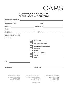 Filling out the Client Information Form online is a straightforward process that enables users to provide essential details for commercial production. This guide will walk you through each section of the form, ensuring a smooth completion for all users, regardless of their previous experience.