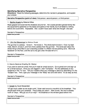 - Begin by carefully reading each narrative passage provided in the worksheet. Take note of details that might indicate the narrator’s perspective.