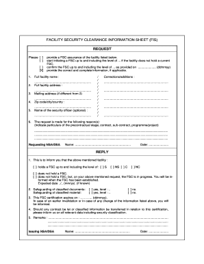 Follow the steps to fill out the Facility Security Clearance Information Sheet online.