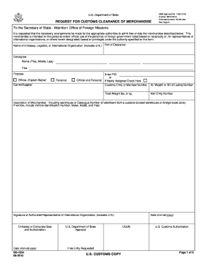 The DS-1504 form is a request for customs clearance of merchandise intended for personal or official use by individuals or foreign governments. This guide will provide step-by-step instructions on how to accurately complete this form online.
