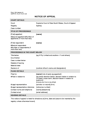 - Enter the court details, including the Supreme Court of New South Wales, Court of Appeal, and the registry location in Sydney. Fill in the case number as it appears in your court documents.