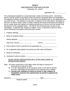 Filling out the PRECONSTRUCTION APPLICATION is an essential step for anyone looking to obtain a fence permit. This guide is designed to assist you with the online completion of the application, ensuring that you provide all necessary information accurately and efficiently.