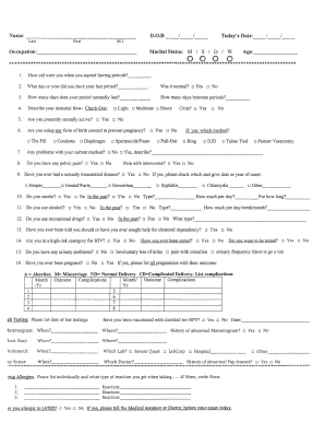 - Fill in any information about past pregnancies, current sexual activity, and contraceptive methods. Provide details as necessary and specify any issues experienced with current methods.