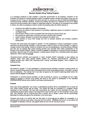 Complete the Random Student Drug Testing Program form online today to ensure participation in your selected activities.