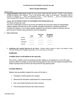 Filling out the Library 101 introduction to information resources form online is a straightforward process that allows users to provide essential information regarding a new course proposal. This guide will help you navigate through each section of the form to ensure accuracy and completeness.