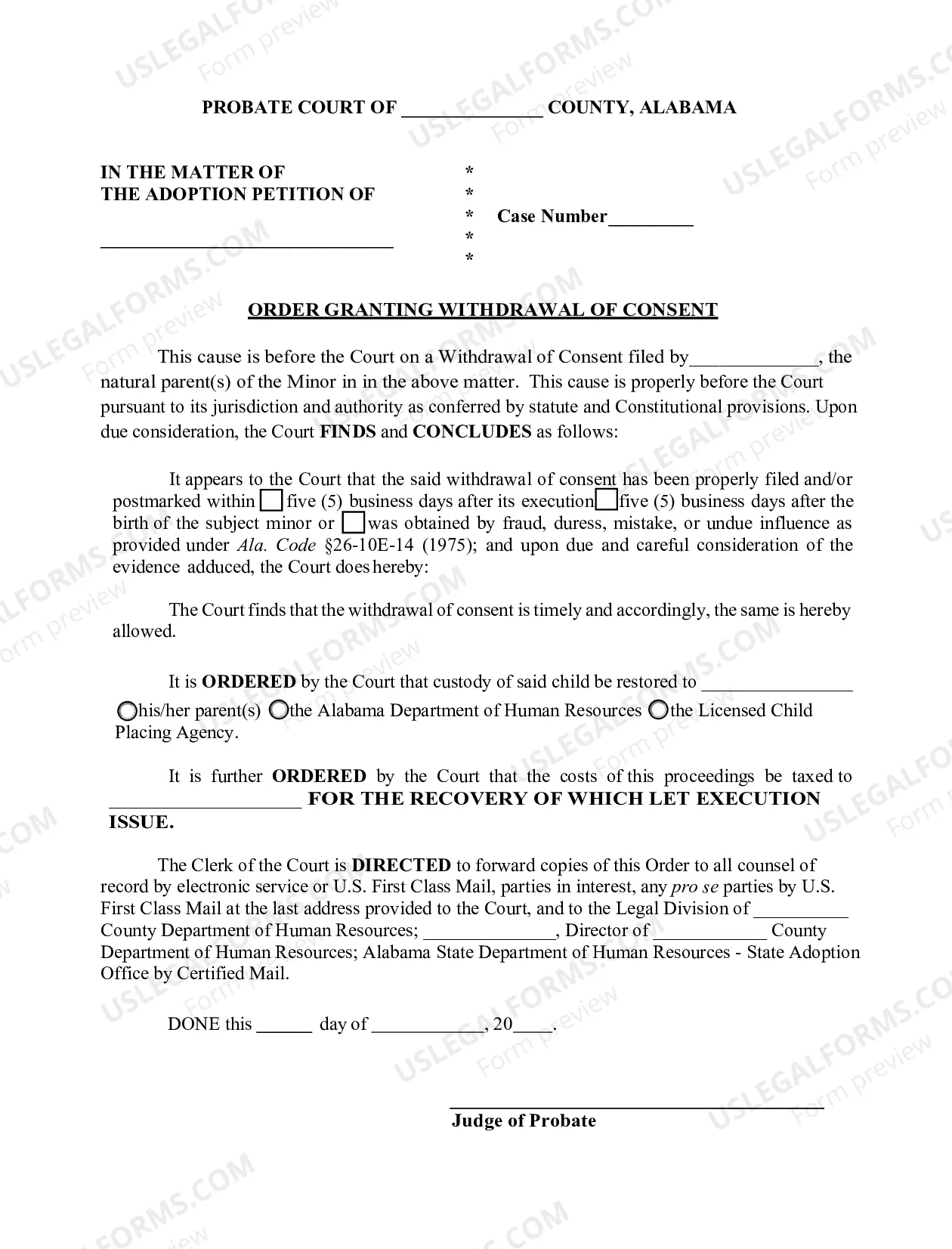 Use this order to officially withdraw consent for adoption, ensuring the legal rights of the natural parent are recognized.