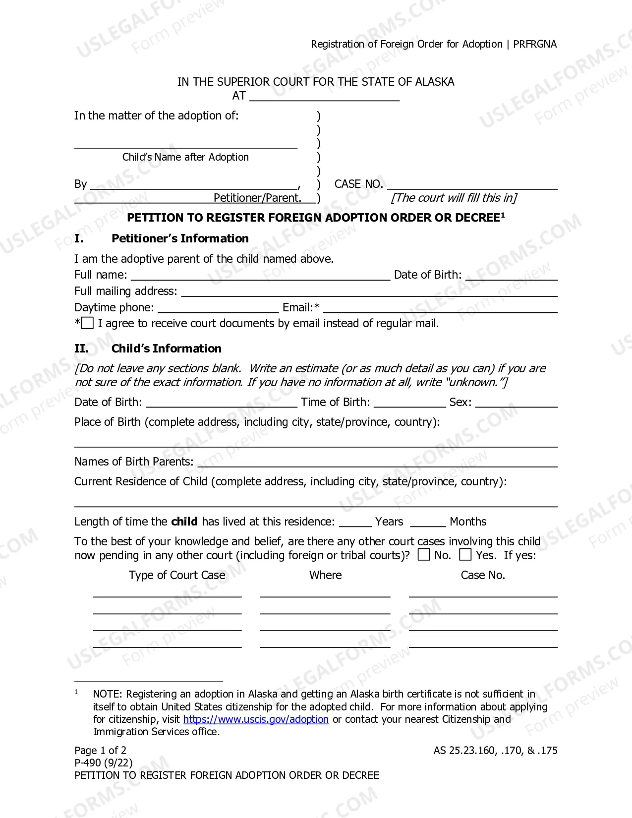 Register a foreign adoption and secure a new birth certificate in Alaska for your adopted child.