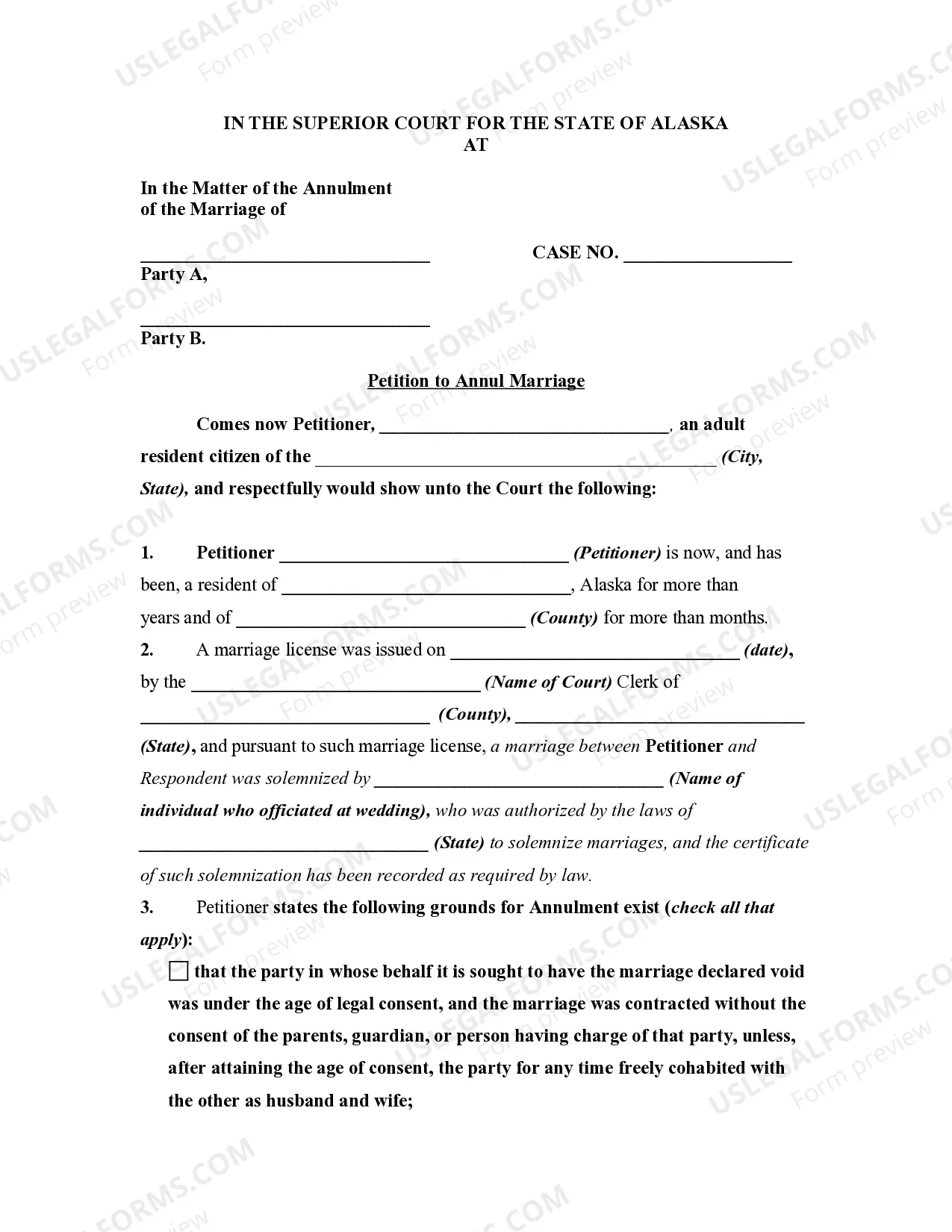 Use this document to request a court annulment of your marriage when grounds like fraud or lack of consent exist.
