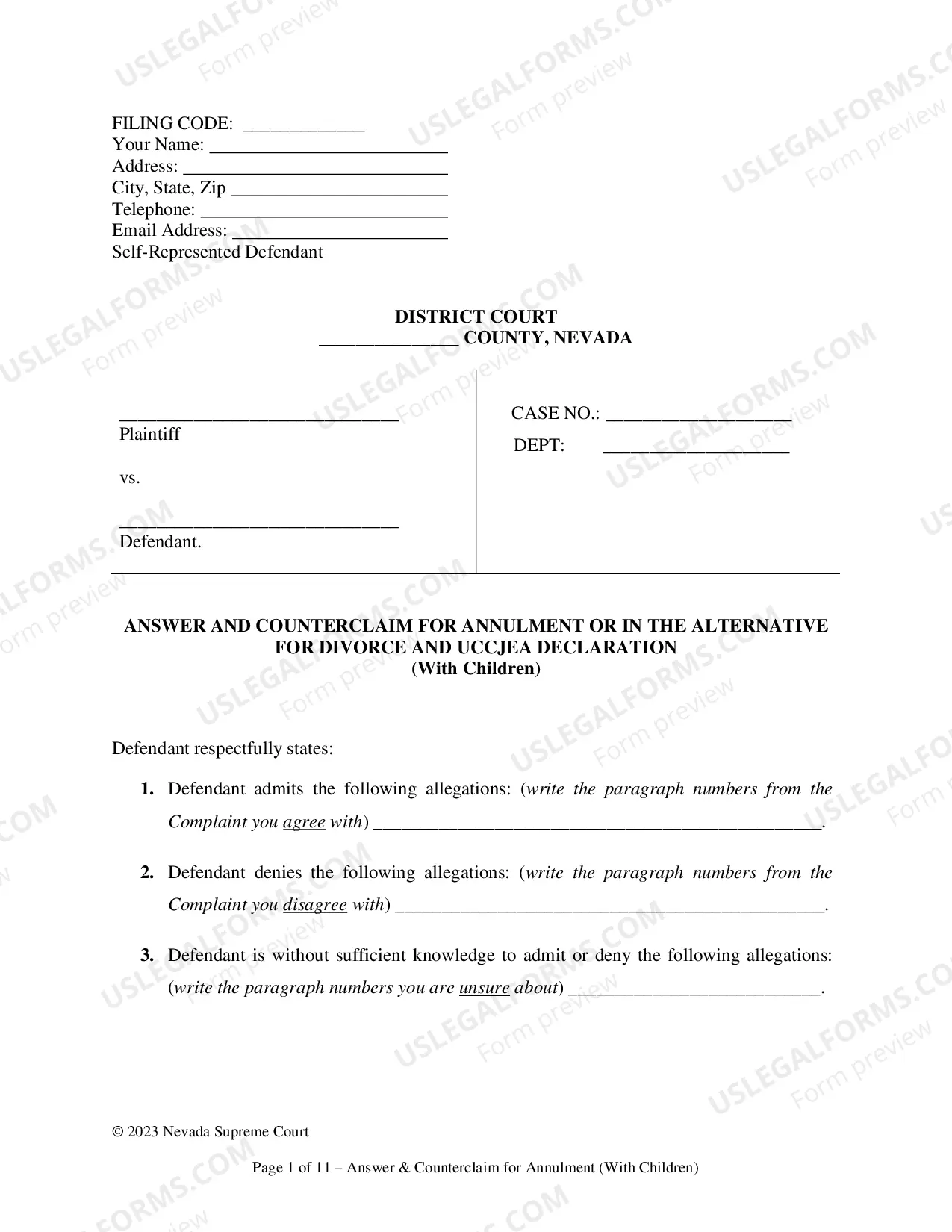 Respond to an annulment complaint by admitting or denying allegations, crucial for your defense in the case.