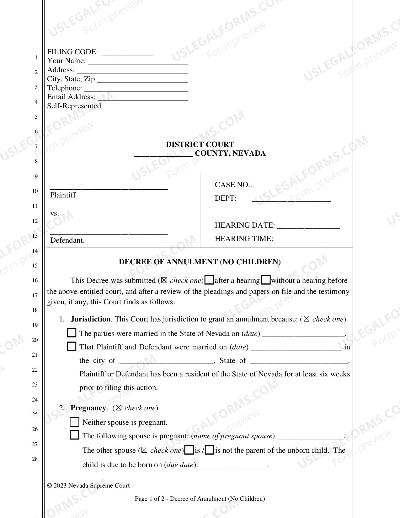 Easily request an annulment of marriage without children, simplifying the legal process for couples in Washoe County.
