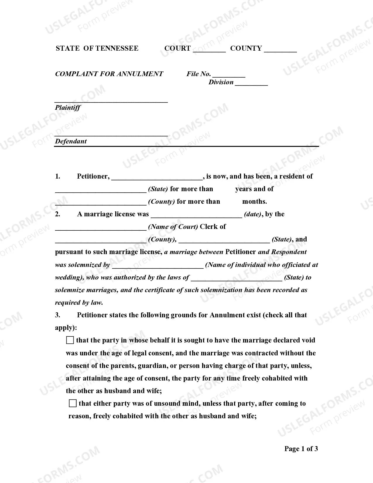 Annulment in Tennessee allows individuals to void a marriage. Our attorney-drafted templates are quick and straightforward to complete.