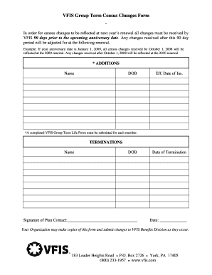 Get Vfis Group Term Census Changes Form - Vfiskpepus 2020-2026