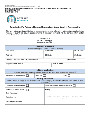 Filling out the CA HBEX 403 form, which allows for the authorization of the release of personal information and the appointment of a representative, is essential for managing your health benefits effectively. This guide will provide you with clear instructions to navigate through the online submission process with ease.