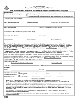 - Select the appropriate award request by indicating whether you are applying for 'The Secretary's Career Achievement Award Request' for over 25 years of service or 'The Department of State Retirement Recognition Award Request' for less than 25 years of service.