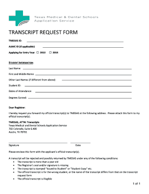Filling out the TMDSAS Transcript Request Form online is a crucial step in ensuring that your academic record is sent accurately to the Texas Medical and Dental Schools Application Service. This guide will walk you through the process of completing each section of the form effectively.