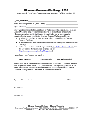 The Clemson Calculus Challenge requires a photography and publicity consent form for minor children. This guide provides step-by-step instructions to help you successfully complete the form online.