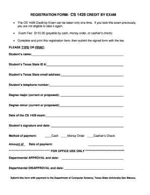 Filling out the Computer Registration Form online is a straightforward process that allows students to register for the CS 1428 Credit by Exam. This guide provides clear instructions to help you complete the form accurately and efficiently.