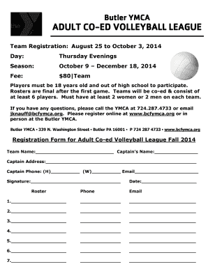 This guide provides a detailed overview of how to complete the Butler YMCA Hours form online. Whether you are registering a team or providing your information, our step-by-step instructions will support you throughout the process.