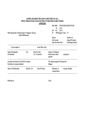 Filling out the Form 40 Pdf is essential for individuals seeking to withdraw from the General and Other Provident Fund in Andhra Pradesh. This guide will provide clear, step-by-step instructions to help users navigate and complete the form online with confidence.