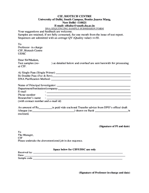 - Finalize your form by providing details on the DNA samples and templates, ensuring to quantify accurately and enclose any necessary gel pictures or supporting documents.