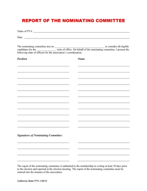 Filling out the 2 Nominating Committee Report.doc is a straightforward process that ensures effective collaboration and transparency within the PTA. This guide provides clear, step-by-step instructions to help users complete the report accurately and efficiently.