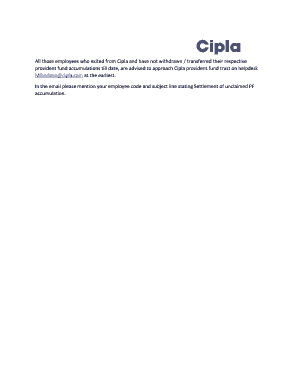 Complete your Cipla Mihorizon form online today to manage your provident fund accumulation efficiently.