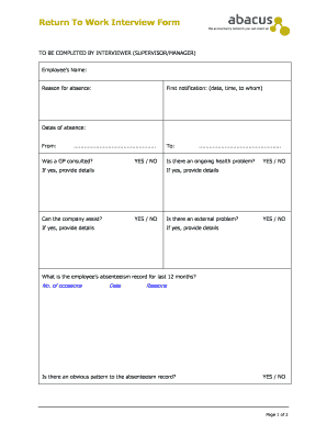 Complete your Return To Work Interview Template online today for a smoother transition back to work.