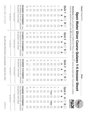 - Proceed to the sections labeled 'Quiz 1' through 'Quiz 4'. For each question, mark your answers by completely filling in the space under the letter corresponding to your choice (A, B, C, or D). If you need to change an answer, erase your selection or place a dark X through your first answer.