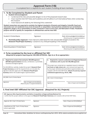 - Finally, the SRC approval section must be completed after experimentation, before final competition. Ensure that both the Regional and State/National SRC Chairs have printed their names, signed, and entered the date of approval.
