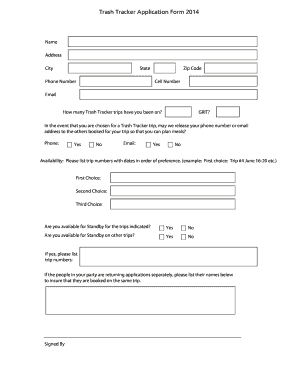 Filling out the Trash Tracker Application Form 2012 - Nps online can be a straightforward process if you follow the right steps. This guide provides clear instructions to help you complete your application accurately and efficiently.