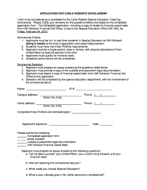 Complete your forms online and ensure a successful application for the Carla Roberts Scholarship today.