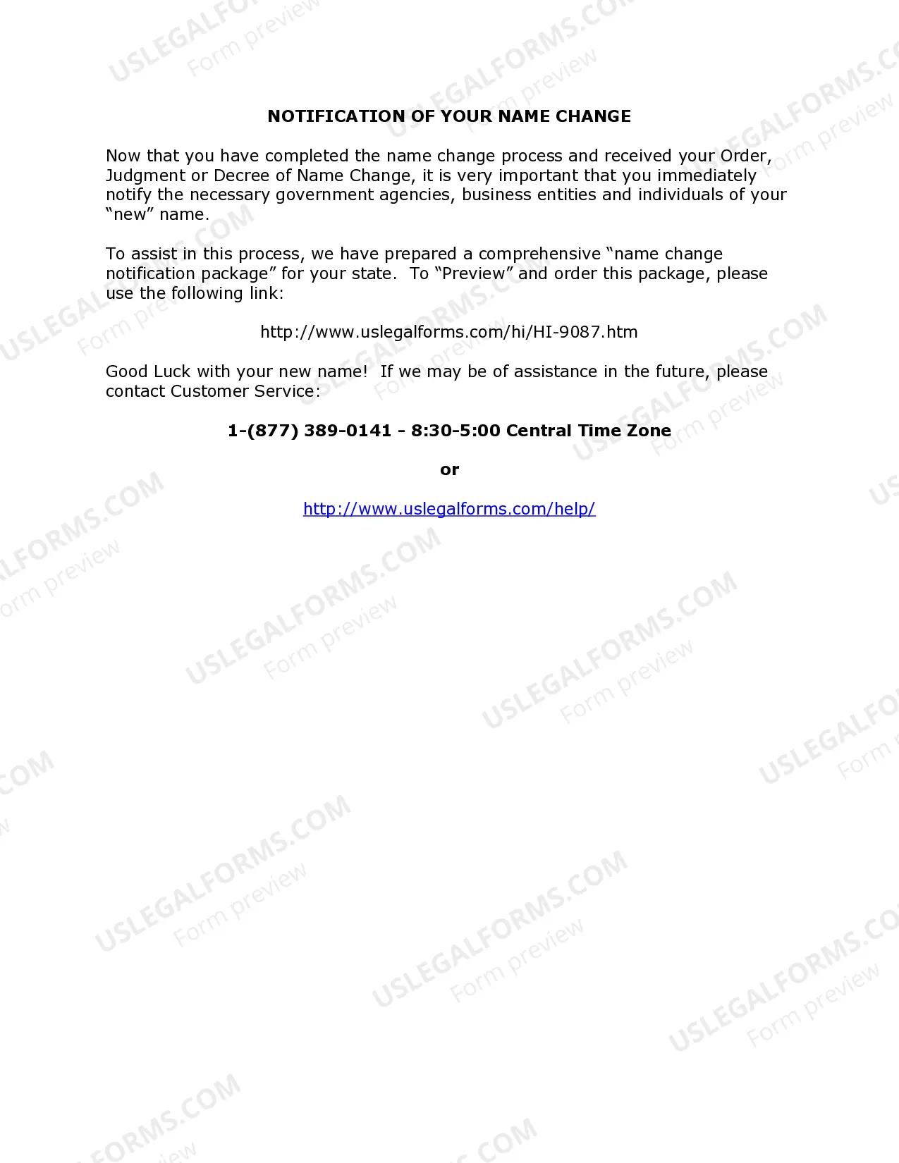 Hawaii Name Change Instructions and Forms Package for a Family - One Parent and Child(ren)